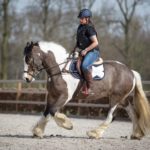 Dandy is een driekleur tinker (het fanner type). Ook hij kwam bij ons toen hij zeven maanden oud was. Ik heb Dandy zelf ingereden, dit was letterlijk opstappen en wegrijden. Hij was zo braaf! Dandy is een plaatje om te zien, en met zijn manen van 1.50 meter word hij ook vaak geboekt voor fotoshoots, filmshoots en shows. Naast de vrijheidsdressuur(shows) rij ik vaak buiten met Dandy en maken we af en toe samen een sprong. Door zijn coole karakter is Dandy een heel geschikt leerpaard. Hij heeft al vele mensen over hun paardrijd angst geholpen.