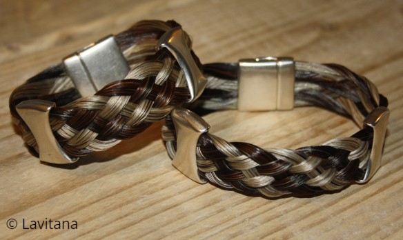 De naam zegt het al: deze armband wordt gevlochten met zes strengen. De armband bevat twee grote zandloper-schuivers. Je kunt kiezen uit een klik- of magneetsluiting in de kleuren zilver, rosé of goud.